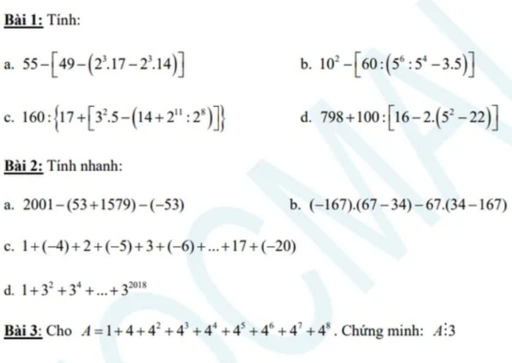 a, 55 - [ 49 - ( $2^{3}$ . 17 - $2^{3}$ .14) ] = 55 - [ 49 - ( 8 . 17 - 8 . 14) ] = 55 - { 49 - [ 8 . (17 - 14) ] }