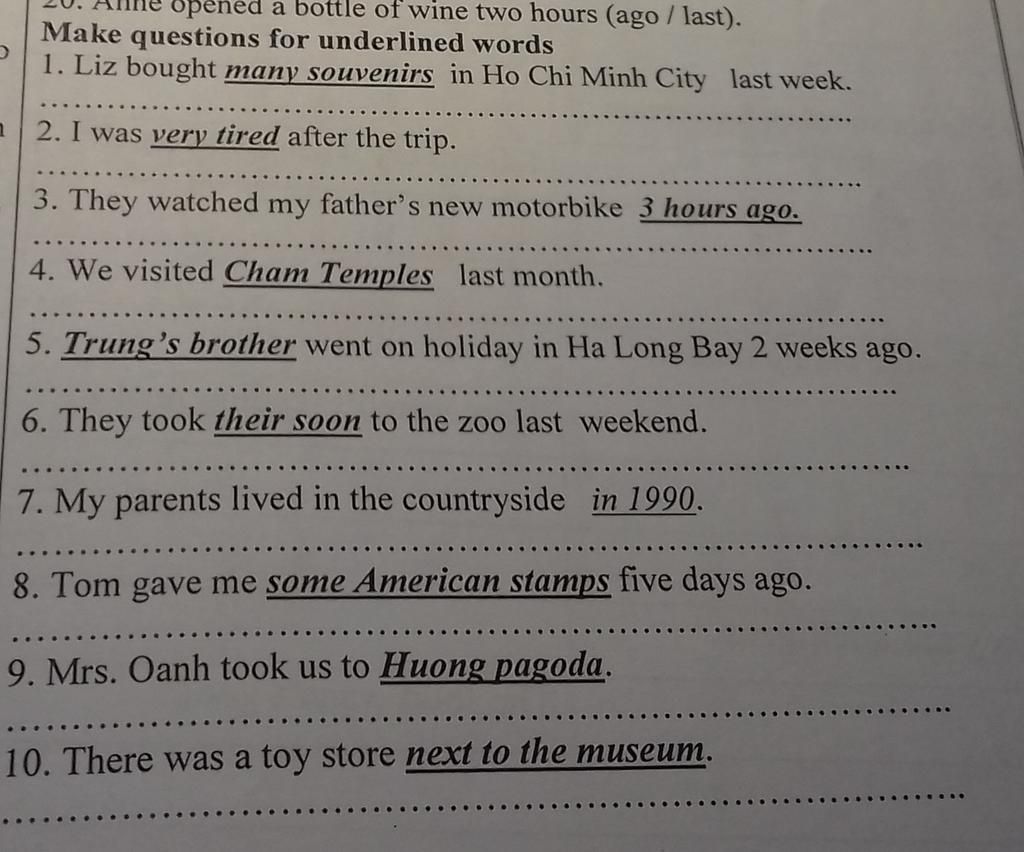 1. ⇒ What did Liz buy in o Chi Minh City last week?