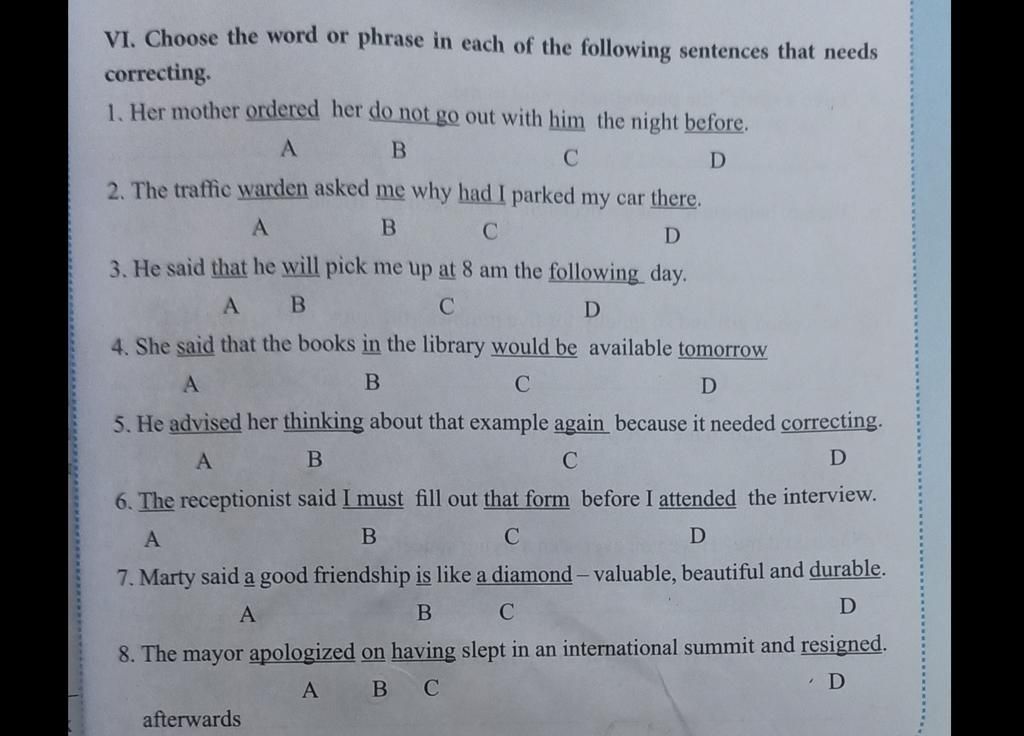2. C -> I had (câu tường thuật: asked sb + từ để hỏi + S V, lùi thì QKĐ -> QKHT)