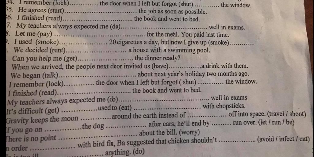 36. locking/to shut (remember Ving : nhớ đã làm gì/forget to V : quên làm gì)