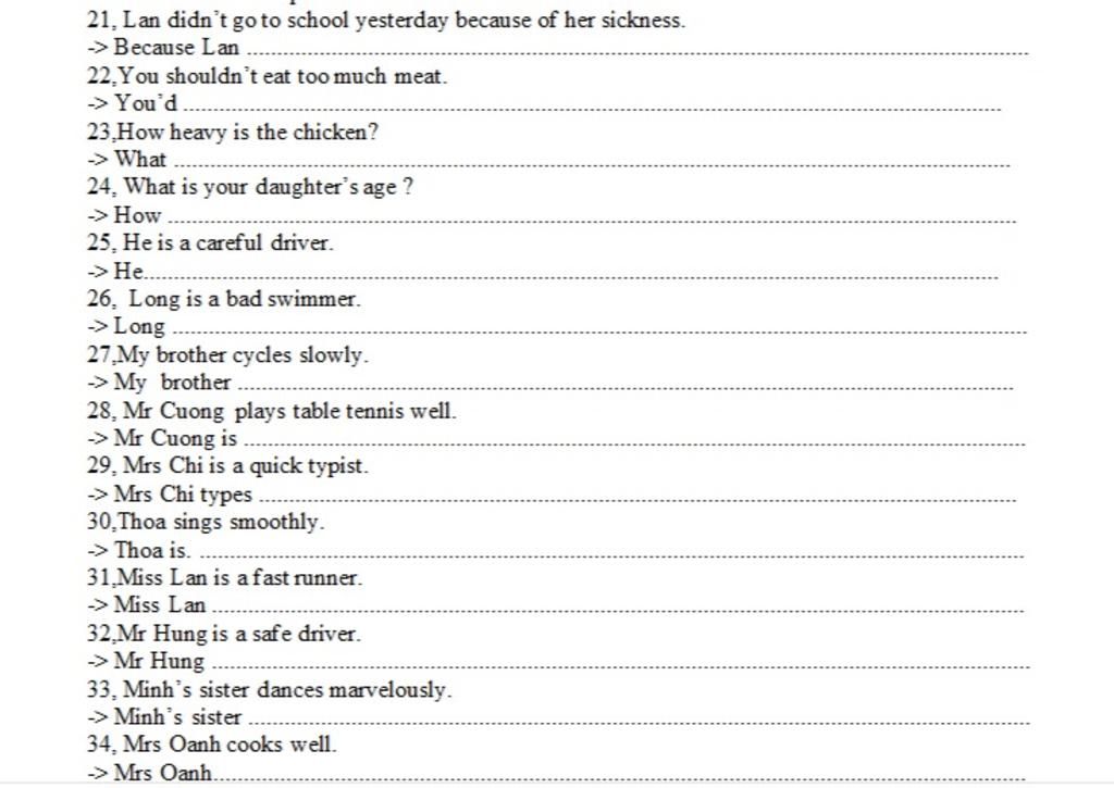 21, Lan didn't go to school yesterday because of her sickness.
