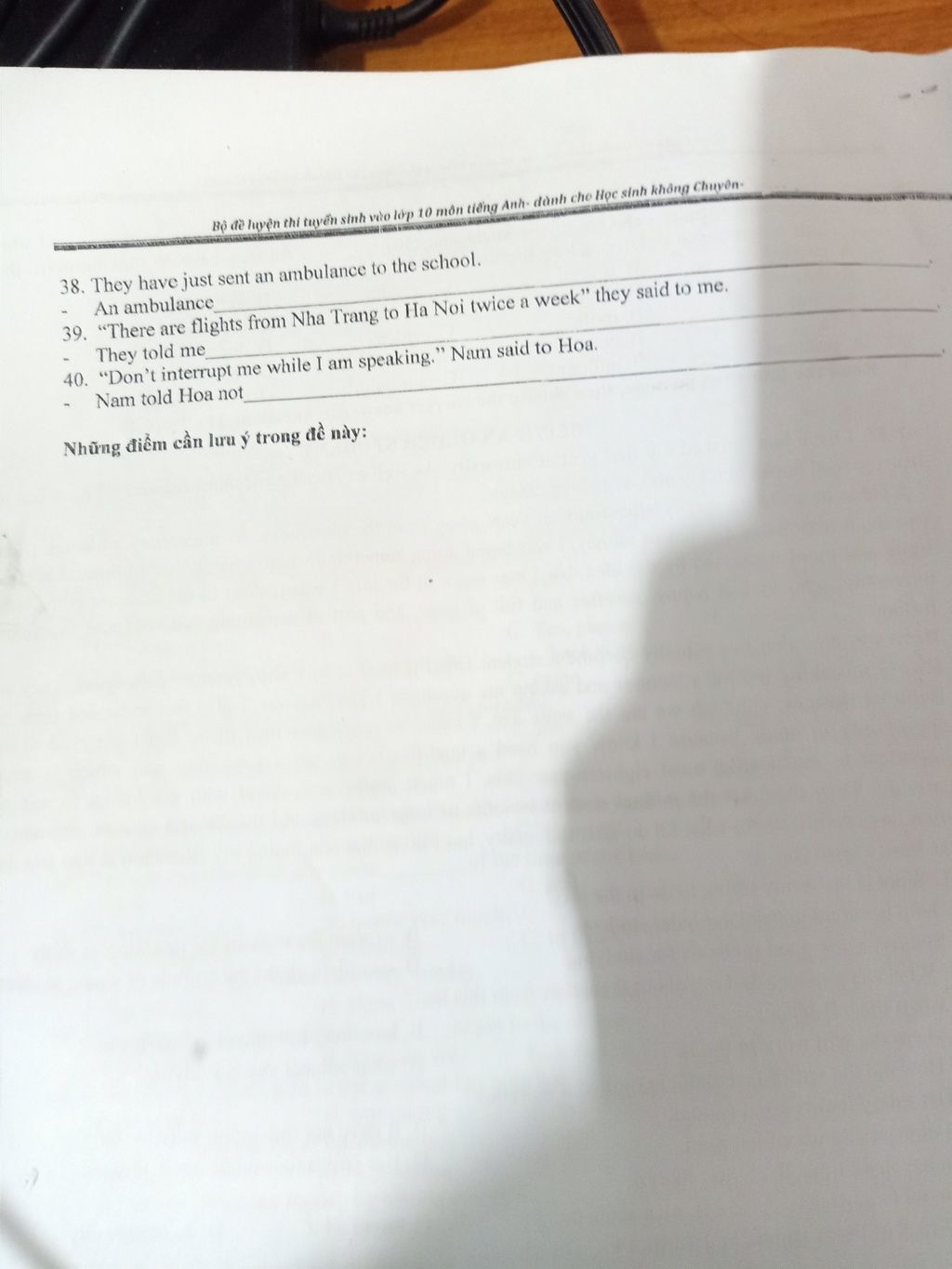 40. Nam told Hoa not to interrupt him while he was speaking.