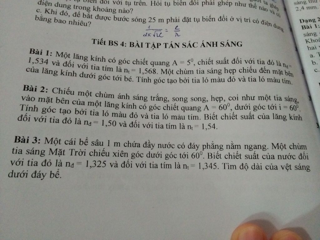 Bài 2 : Công thức tính góc tạo bởi tia ló màu đỏ và tia ló màu tím là :