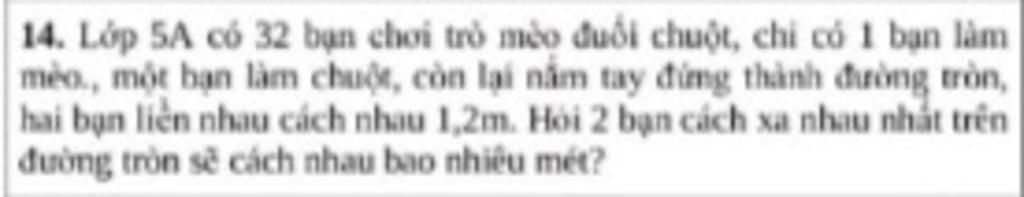 Hai bạn đứng cách xa nhau nhất là hai bạn nằm trên đường kính của hình tròn có chu vi 36 m.