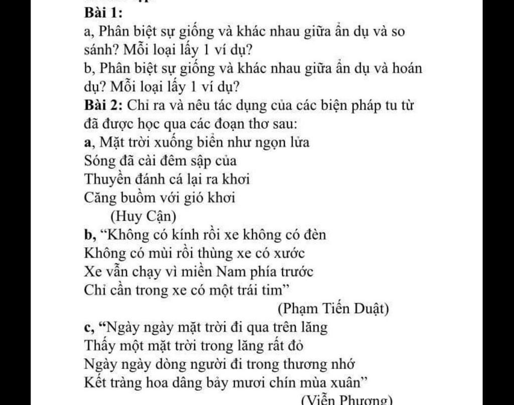 c, Biện pháp ẩn dụ "mặt trời". Hình ảnh "mặt trời" đầu tiên là hình ảnh của mặt trời tả thực của vũ trụ còn hình ảnh "mặt trời" thứ hai chính là hình ảnh ẩn dụ của Bác. Nhờ có hình ảnh ẩn dụ này, tác giả đã nhấn mạnh được tầm quan trọng và sự vĩ đại, bất tử như vũ trụ của Người. Nếu như mặt trời quan trọng với sinh vật trên trái đất thì Bác Hồ chính là vầng thái dương không bao giờ tắt, mang đến ánh sáng và hy vọng cho dân tộc VN vượt khỏi ách nô lệ và lầm than
