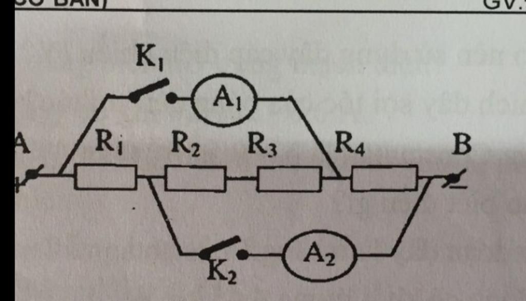 a. Khi K1 ngắt, K2 đóng thì số chỉ của các ampe kế là: