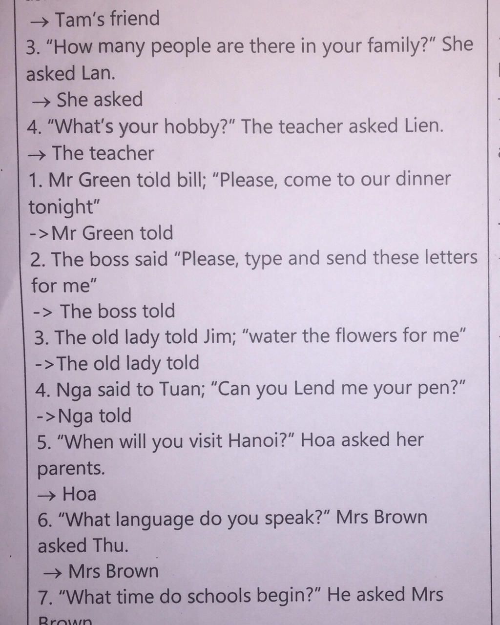 4. Nga said to Tuan; "Can you Lend me your pen?"