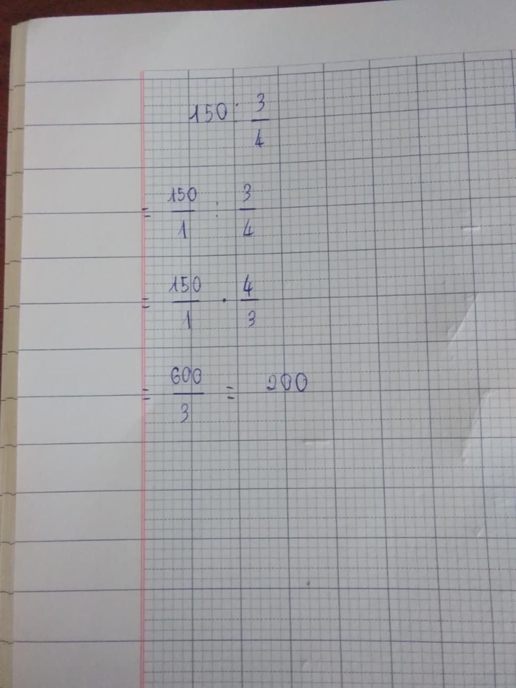 Mình phải lấy 150 : 3/4 là 150 :4 = bao nhiêu × với 3 đúng ko