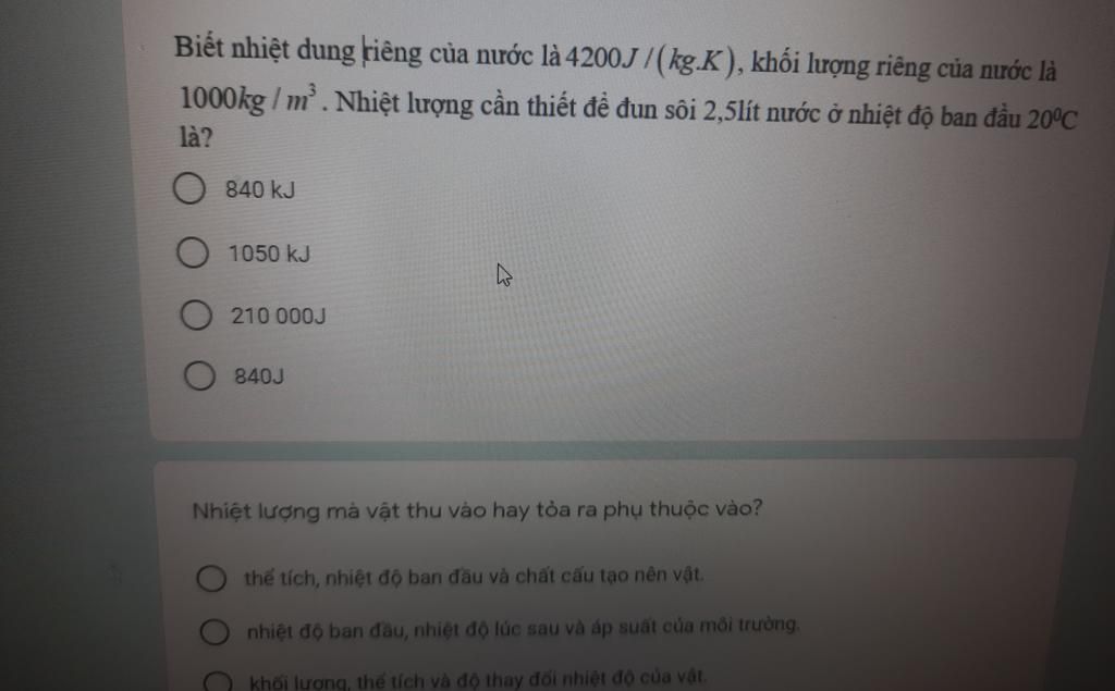 `Q=mc(t-t_0)=2,5.4200.(100-20)=840000 \ (J)=840 \ kJ`