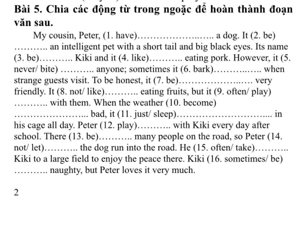 Bài 5. Chia các động từ trong ngoặc để hoàn thành đoạn