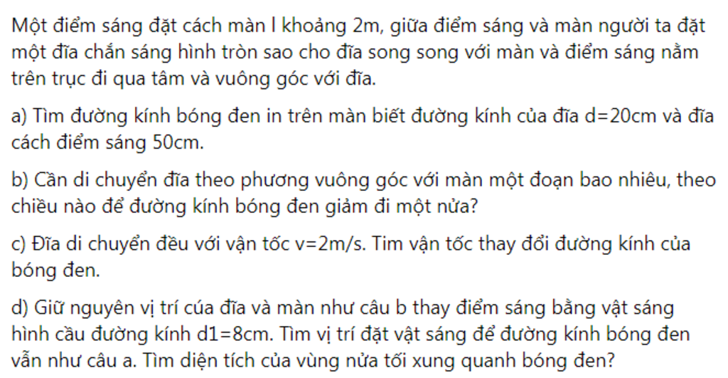 1. Gọi AB, A'B' lần lượt là đường kính của đĩa và của bóng đèn.