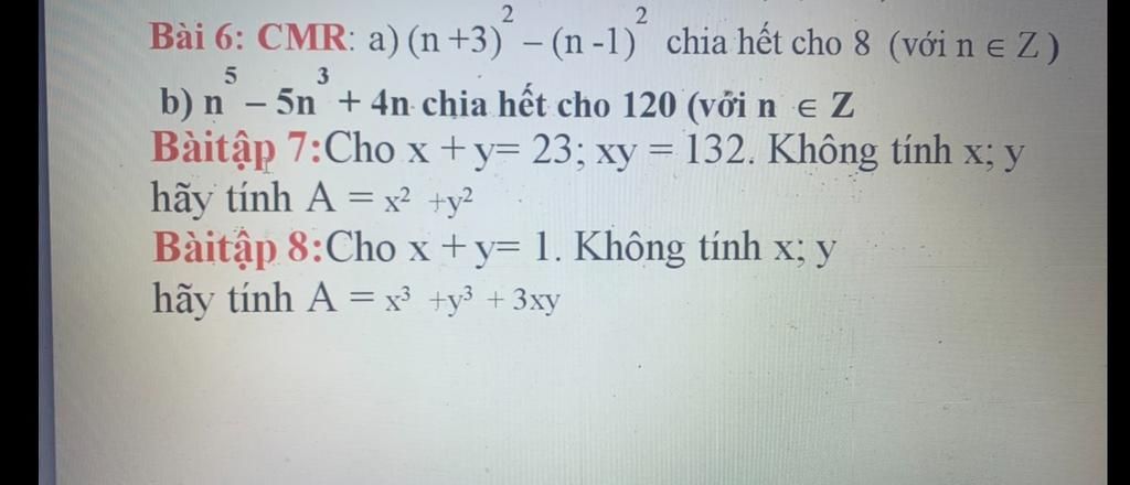 Bài 6: CMR: a) (n+3) – (n -1) chia hết cho 8 (với n e Z)