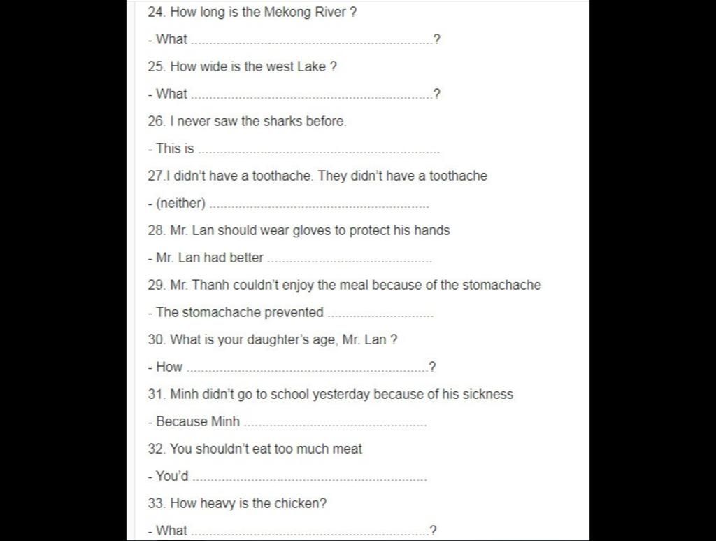sai câu 31 rồi phải là Because Minh was sick so Minh didn't go to school.