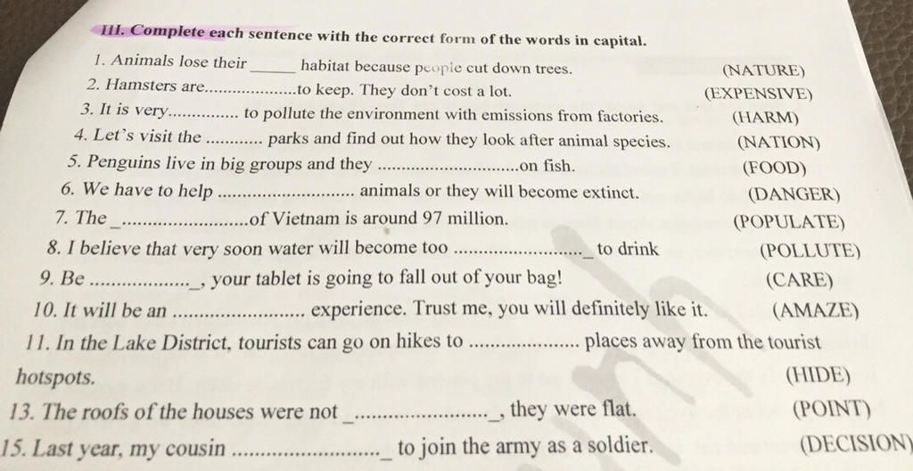 1. natural | vì đứng trước danh từ nên phải chuyển thành tính từ