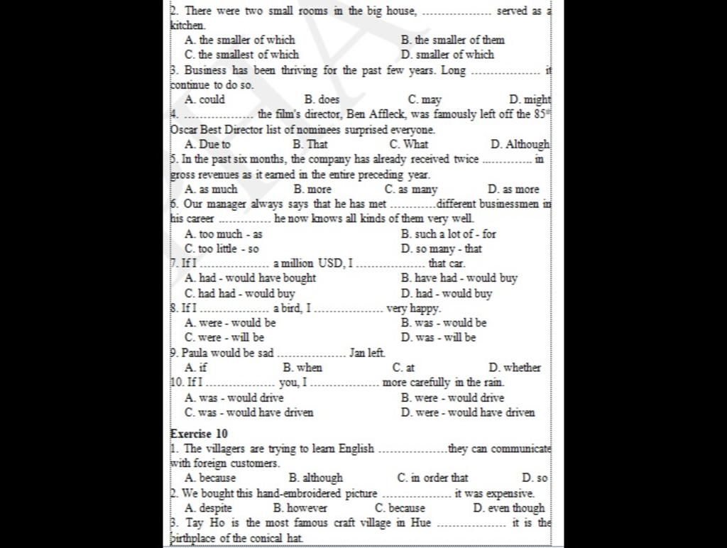 11. d ( Dân làng cố gắng học tiếng Anh để kết nối với người nươc ngoài )