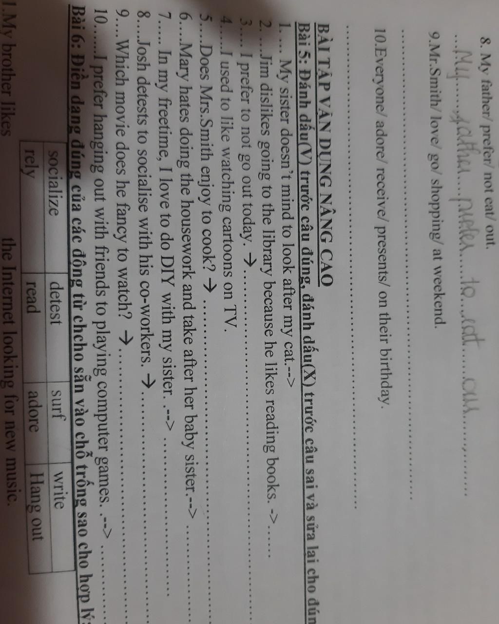 `8`. to socialize `->` socialzing ( detest + Ving )