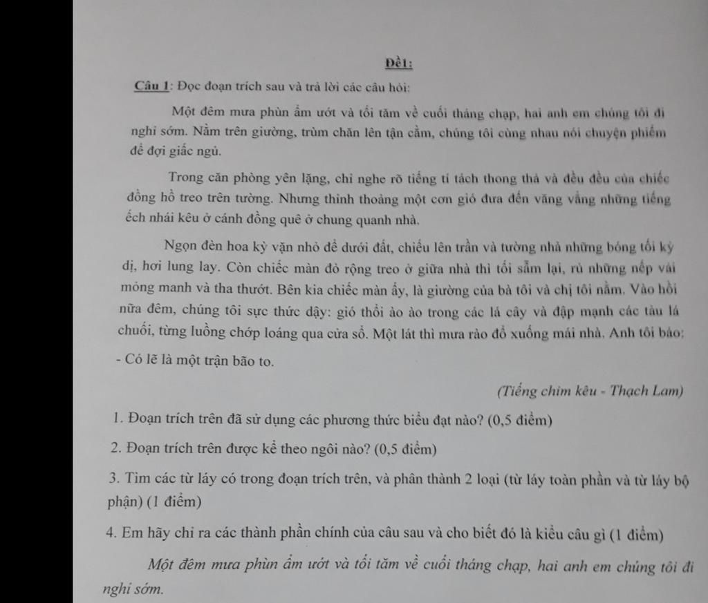 * Ngôi kể: Kể theo ngôi thứ nhất.