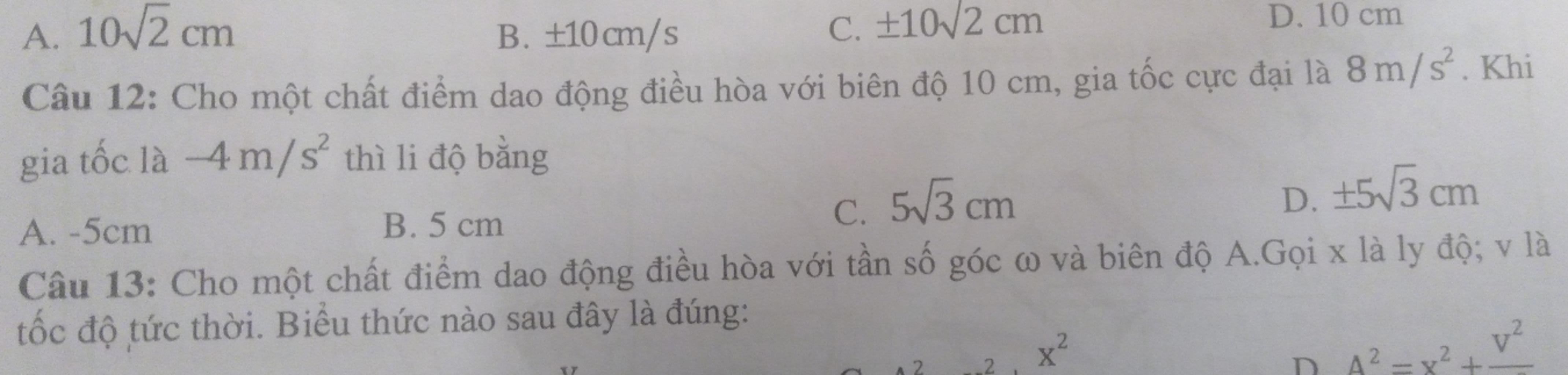 a = - {\omega ^2}x \Rightarrow - 400 = 80x \Rightarrow x = - 5cm