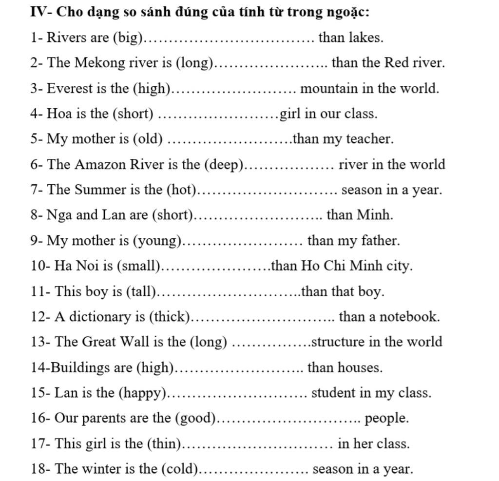 - Tận cùng là y → đổi -y thành - i và thêm ER / EST