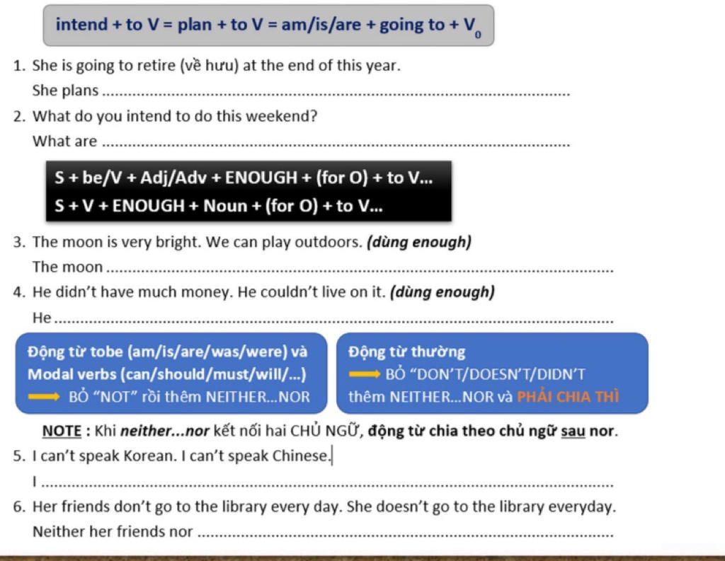 6. Neither her friends nor her goes to the library every day. *Câu này không rõ lắm