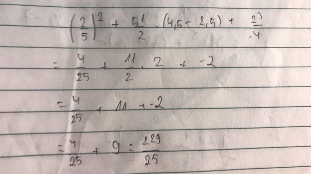 `(2/5)^2+5 1/2.(4,5-2,5)+2^3/(-4)`