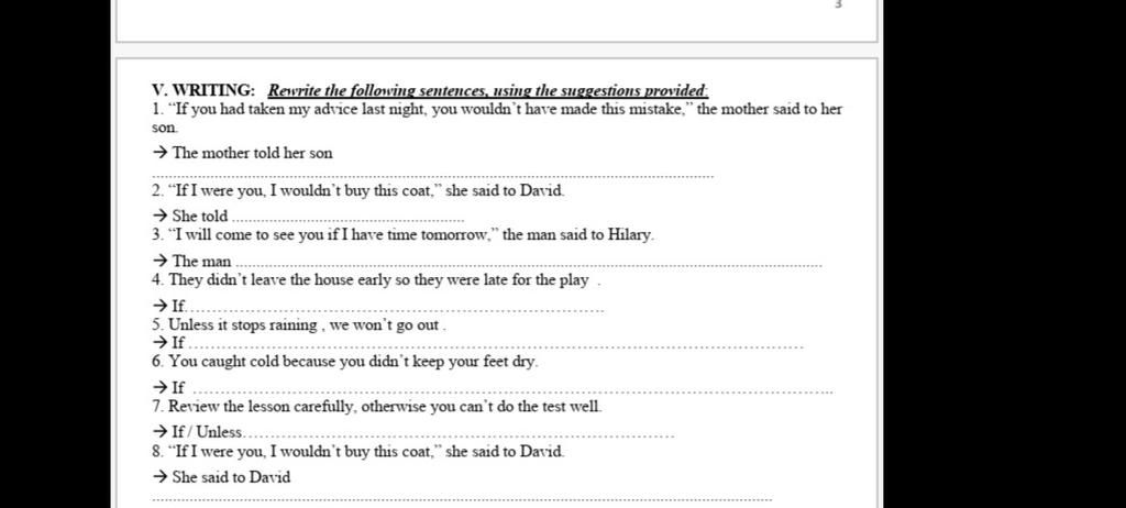 8. She said to David that if she were him, she wouldn't buy that coat.