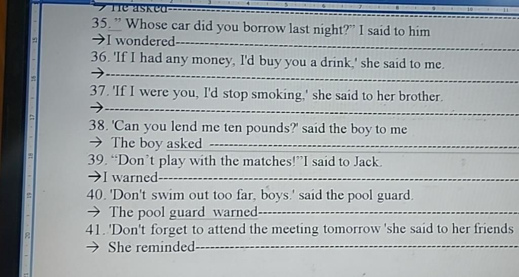 $\text{38.}$ The boy asked me if I could lend him 10 pounds.