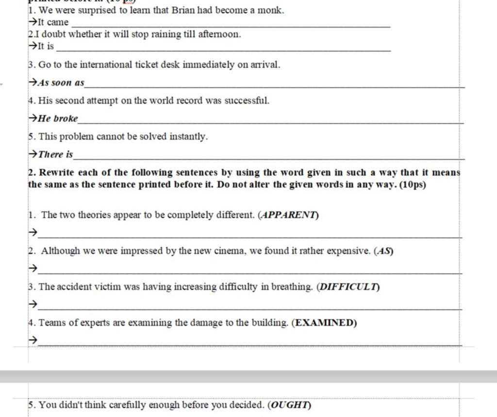 1. It came as no surprise to us to learn that Brian had become a monk.