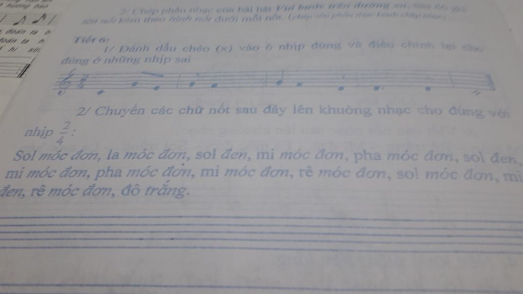 1/Dánh dầu chéo (x) vào 6 nhip dung va điều chinh