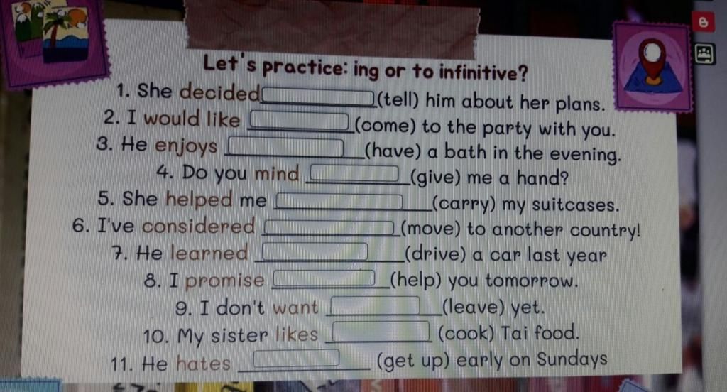 $8.$ to help (Giải thích: promise to V; hứa sẽ làm gì)