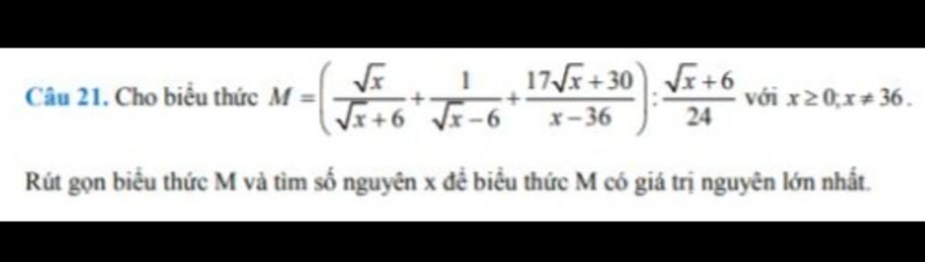 $= \frac{\sqrt{x}+6}{\sqrt{x}-6}.\frac{24}{\sqrt{x}+6}$