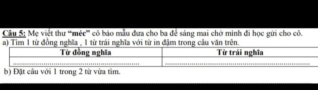 -Từ trái nghĩa: không có từ nào trong tiếng việt