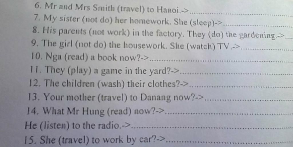 6.Mr and Mrs Smith (travel) to Hanoi.