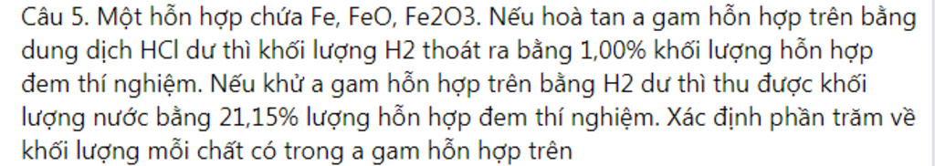 Gọi số mol Fe, FeO và Fe2O3 là a, b, c