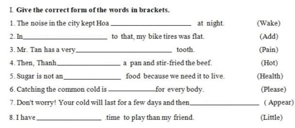 1. The noise in the city kept Hoa awake at night.