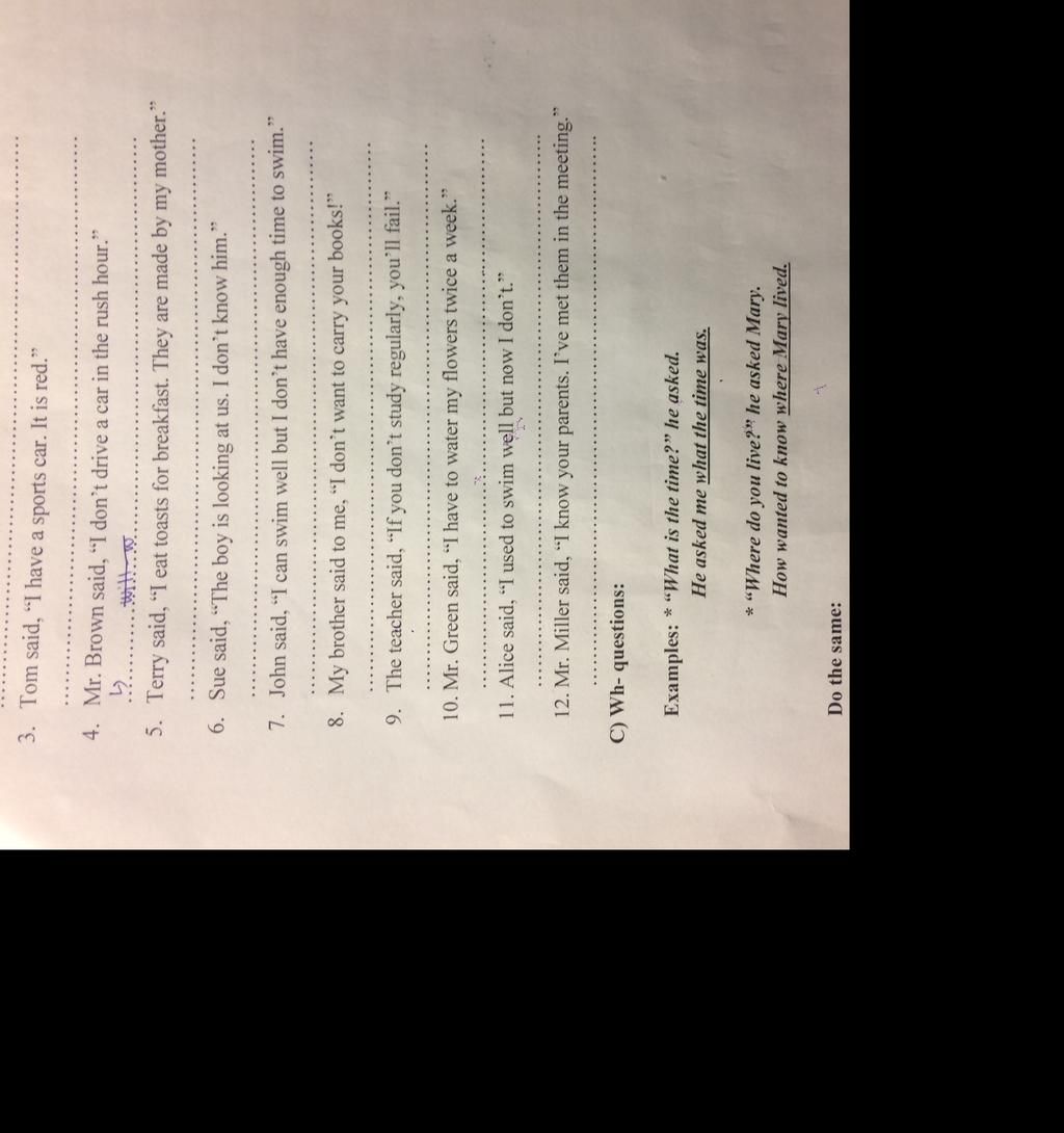 $\text{5.}$ Terry said he ate toasts for breakfast. They were made by his mother.