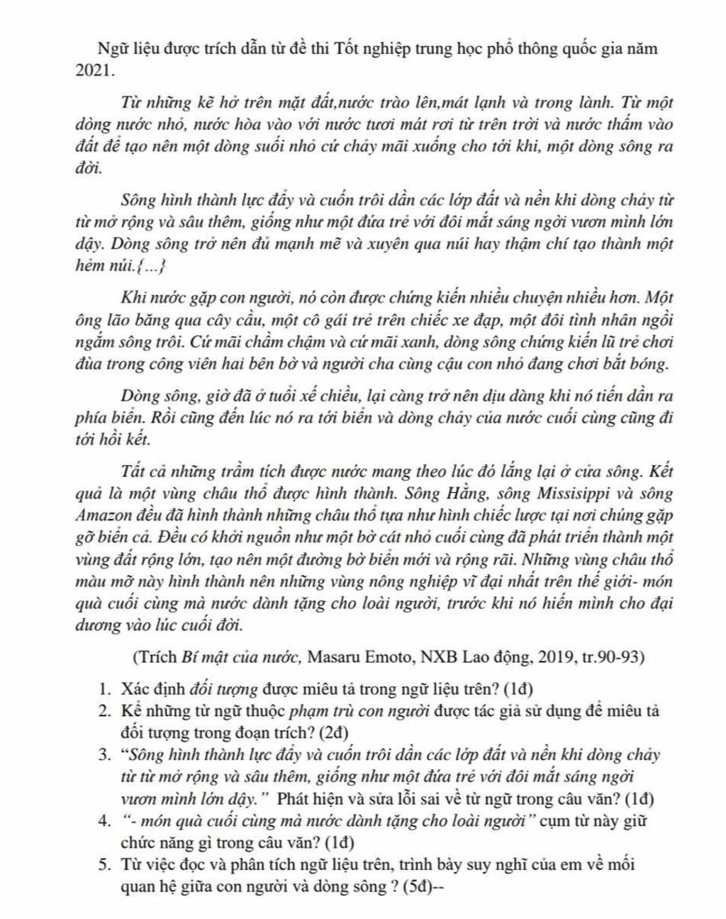 Ngữ liệu được trích dẫn từ đề thi Tốt nghiệp trung học phổ thông quốc gia năm