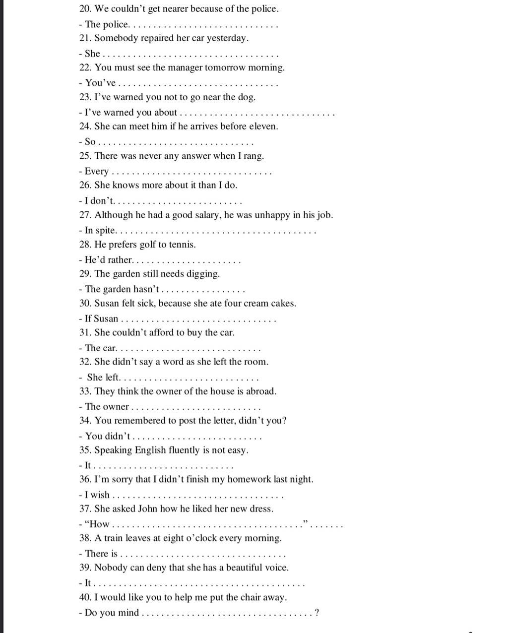 - In spite of + N/ Noun phrase/ V-ing phrase, clause.