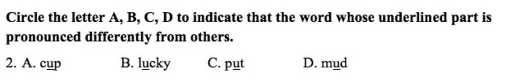 2 A cup B lucky C put D mud