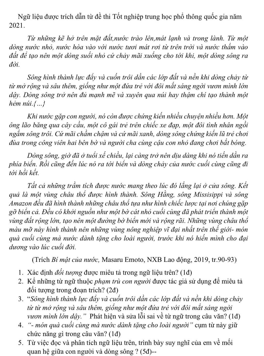 1. Đối tượng được miêu tả trong ngữ liệu trên là dòng sông.