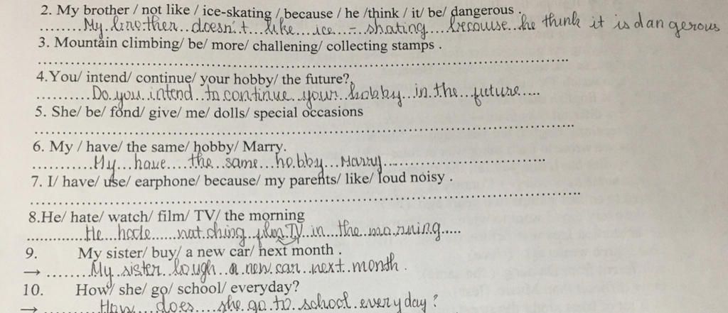 2. My brother doesn't like ice-skating because he thinks it is dangerous