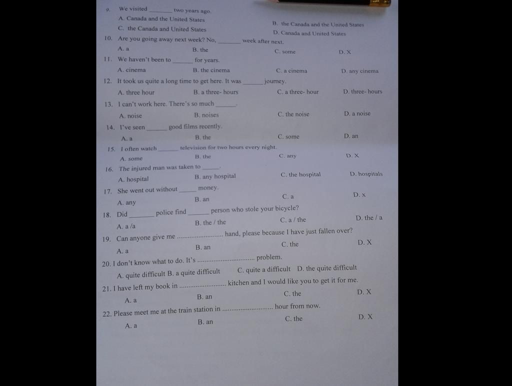 9A 10B 11D 12C 13A 14A 15B 16C 17 D 18D 19A 20B 21C 22B