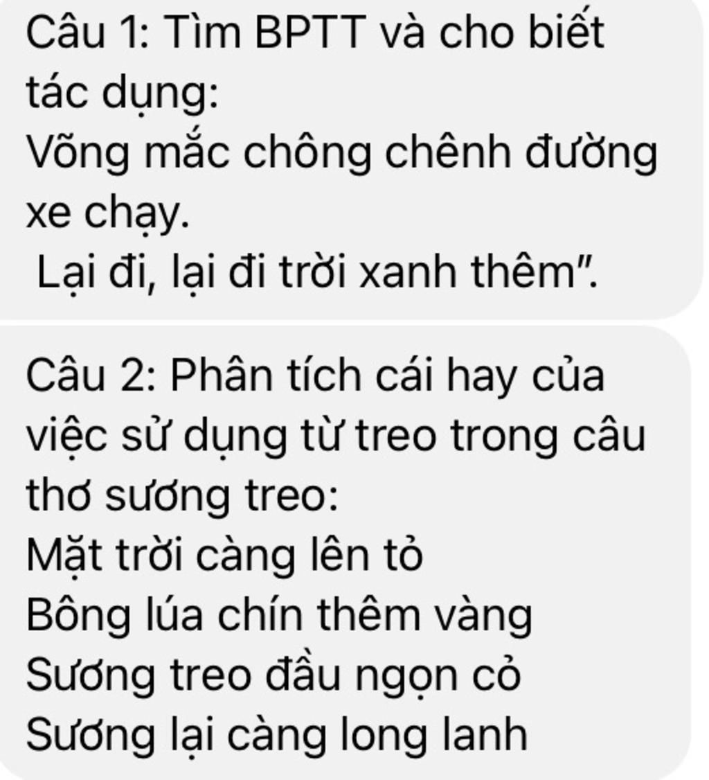 $\Rightarrow$ Khi sử dụng từ treo, ta cứ ngỡ như sương có hành động, lá tính cách, có tâm trạng hệt như con người. Tác giả đã sử dụng biện pháp nghệ thuật nhân hóa để "sương" thêm sinh động, linh hoạt
