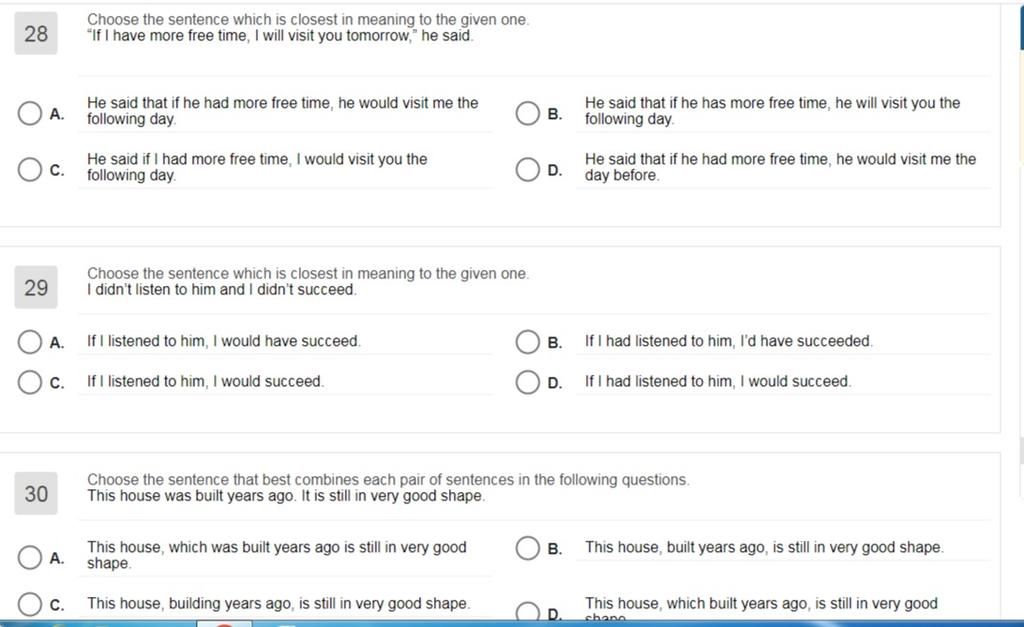 30 B→Ngôi nhà này, được xây nhiều năm trước, vẫn còn giữ hình dáng đẹp.( đồng nghĩa và đúng cấu trúc)