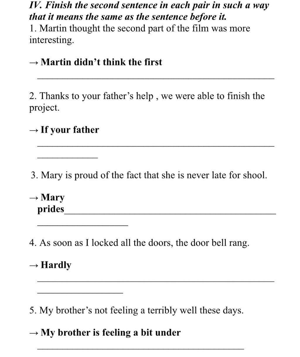 2. If your father hadn’t/had not helped us, we wouldn’t have been able to finish/ couldn’t have