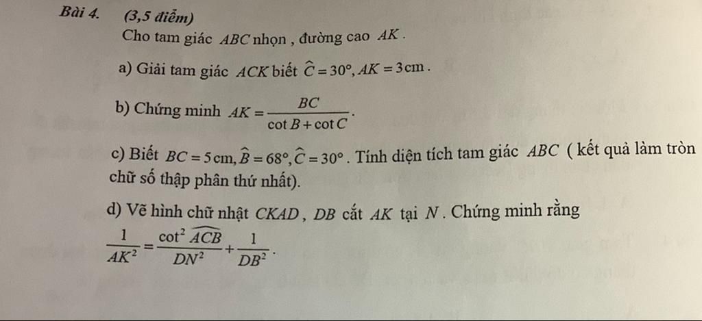 a) Giải tam giác ACK biết ĉ = 30°, AK = 3 cm.