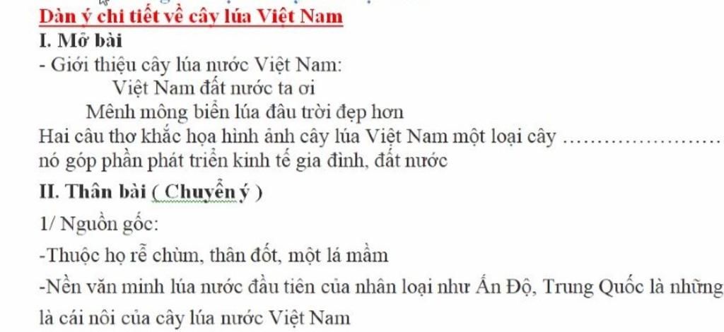 Dàn ý chi tiết về cây lúa Việt Nam