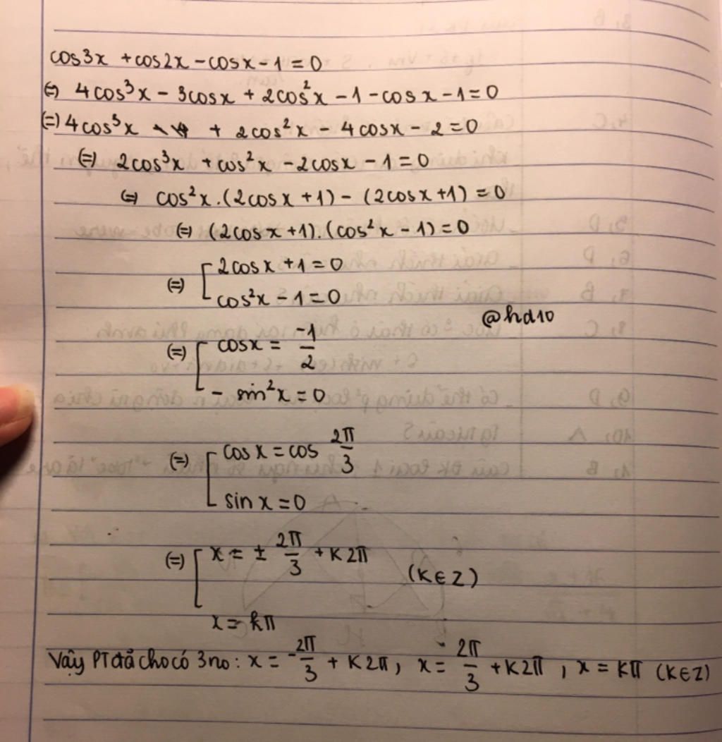 $ PT ⇔ (cos3x - cosx) - (1 - cos2x) = 0$