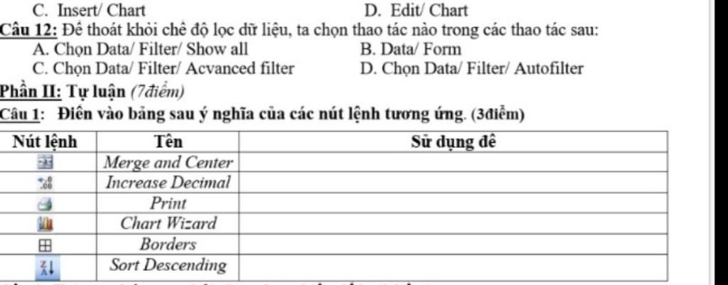 - Sort Descending dùng để sắp xếp theo thứ tự từ lớn đến bé.