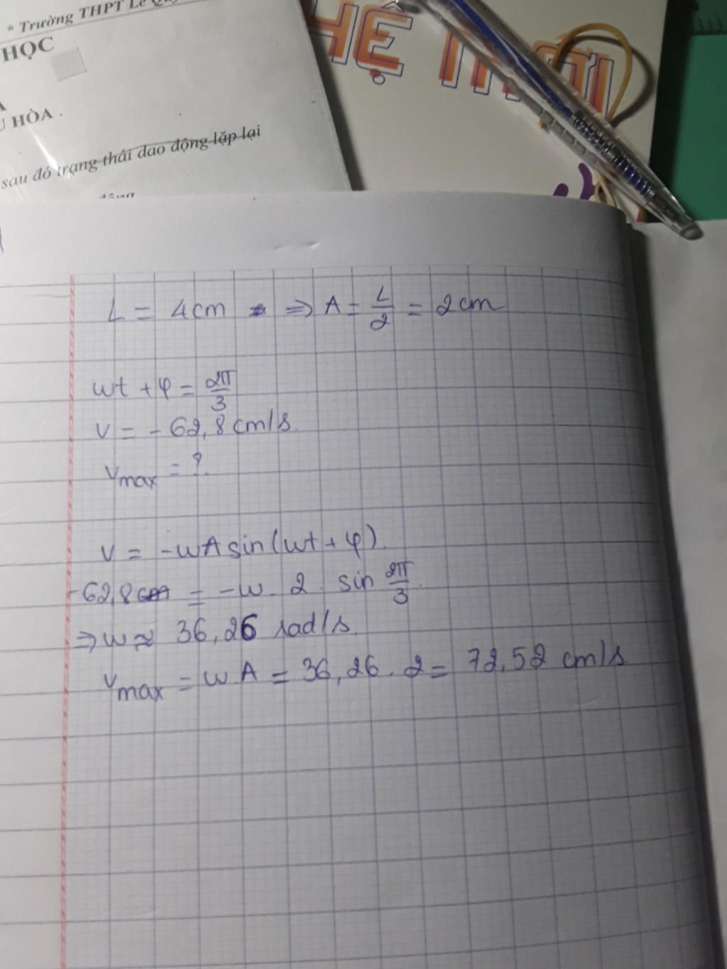 v = - {v_{max}}\sin \left( {\omega t + \varphi } \right) = - {v_{max}}\sin \left( {\frac{{2\pi }}{3}} \right) = - 62,8\\